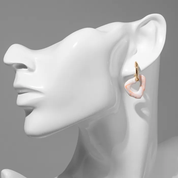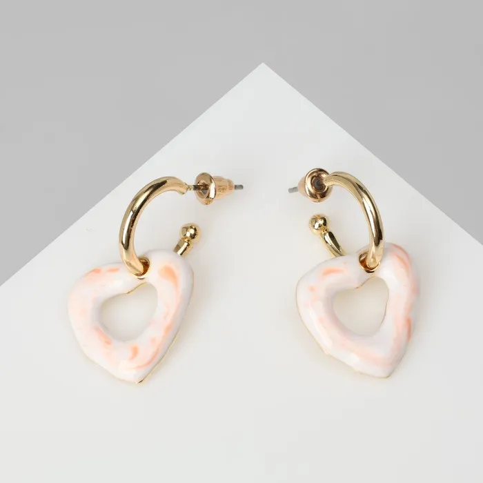 Серьги с эмалью в форме сердца с нежными разводами в бело-розовой гамме на золотистой металлической основе — это воплощение лёгкости и романтики в изящном аксессуаре. Их длина всего 3 см делает украшение универсальным и удобным для ежедневного ношения, а золотистый оттенок фурнитуры придаёт образу теплоту и благородство.
