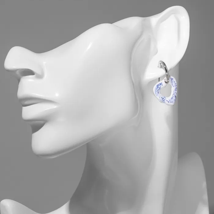 Серьги с эмалью в форме сердца с нежными разводами бело-синего цвета — это гармоничное сочетание изящества и свежести в одном украшении. Их серебристая основа подчёркивает благородство оттенков, создавая лёгкий и воздушный образ, который идеально подходит для повседневной носки и праздничных мероприятий.