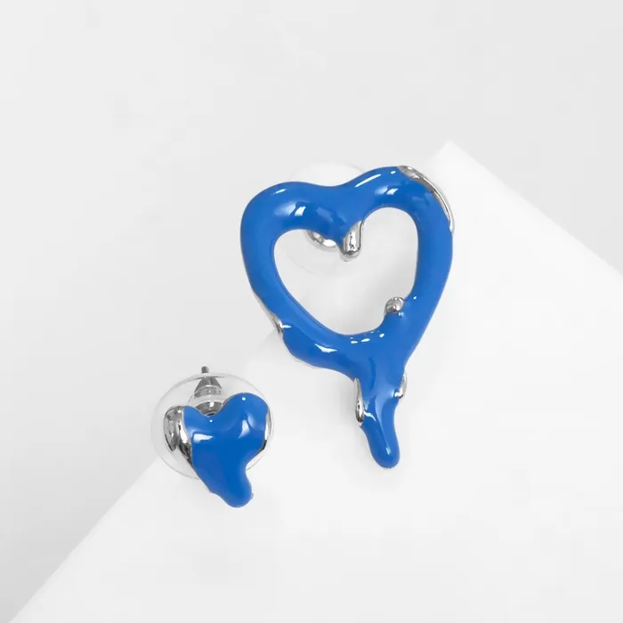 - Изысканный дизайн: форма сердечек с плавными линиями и насыщенный синий цвет делают серьги универсальным украшением для повседневной носки и особых случаев.