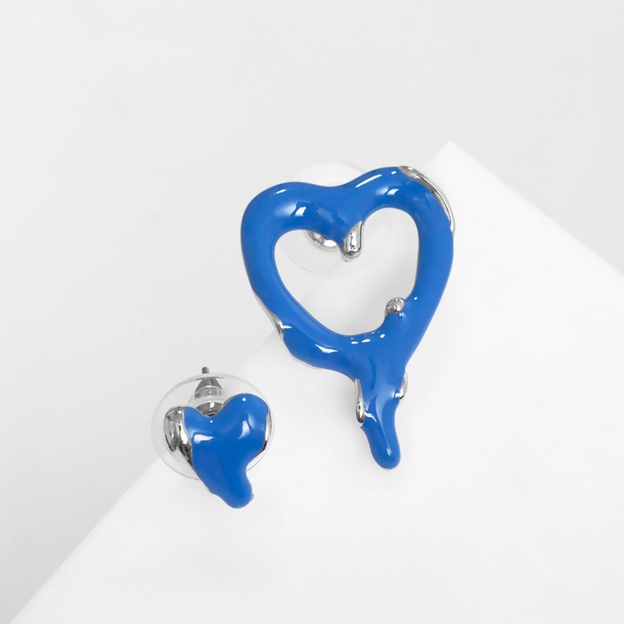 Металлическая основа с серебристым покрытием придаёт серьгам лёгкость и долговечность, а застёжка-пусет обеспечивает надёжную фиксацию и комфорт при длительном ношении. Эмаль насыщенного синего цвета добавляет глубину и выразительность, создавая эффект плавного таяния, который словно отражает нежность и тепло чувств.