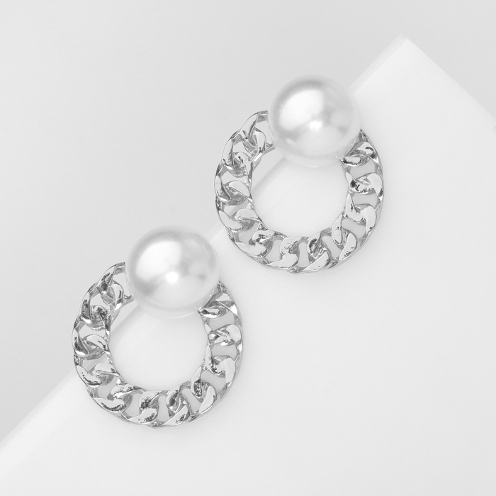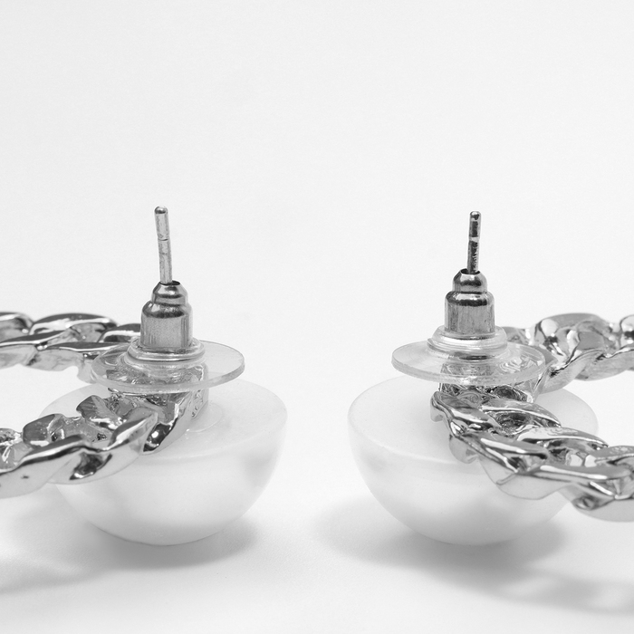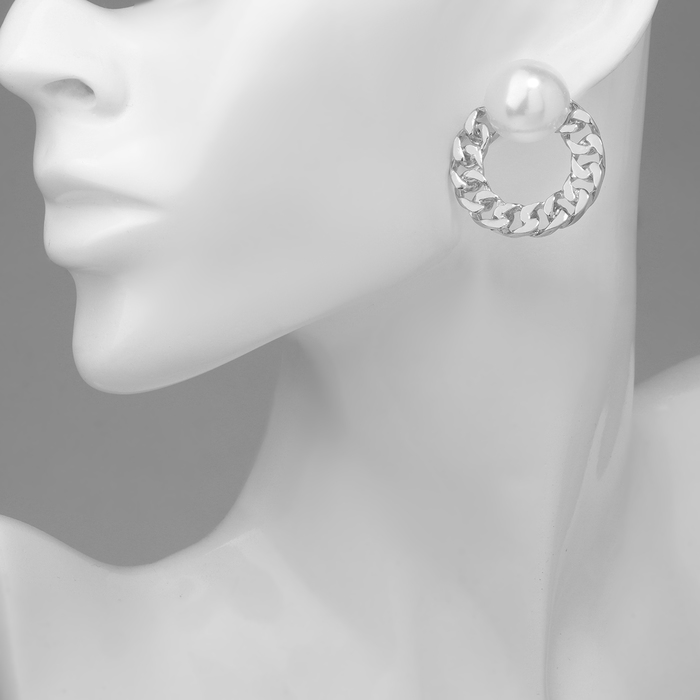 Серьги с жемчугом «Абстракция» цепь, цвет серебро