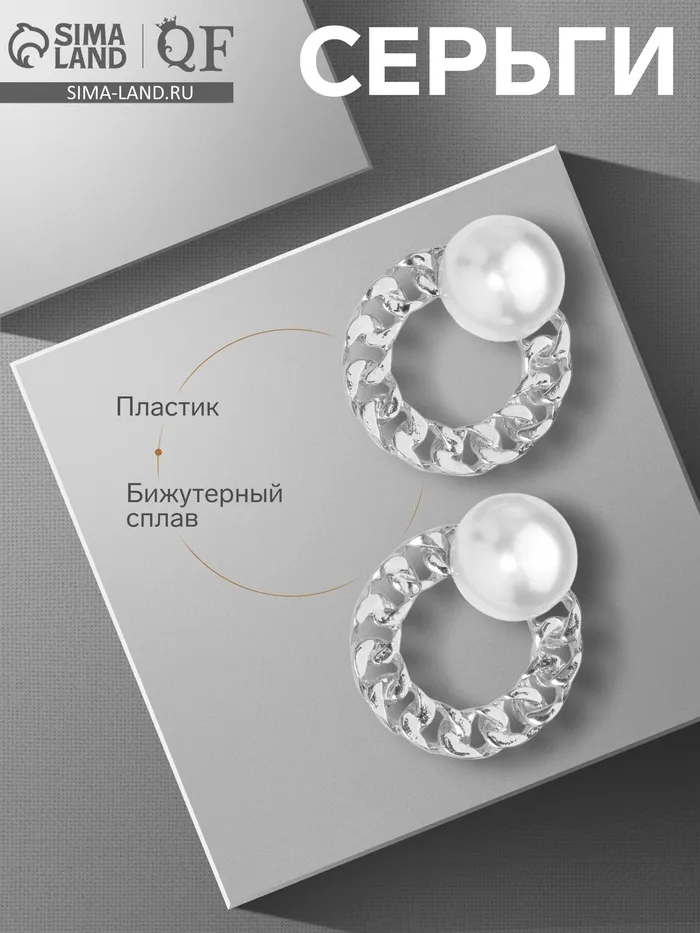 Серьги с жемчугом «Абстракция» цепь, цвет серебро — Характеристики