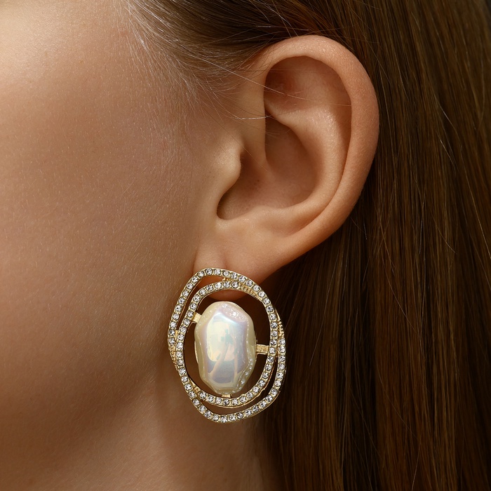 Откройте для себя уникальные серьги, которые станут неотъемлемой частью вашего образа и подчеркнут вашу индивидуальность. Эти серьги с искусственным жемчугом в золотой оправе и абстрактным дизайном привносят в ваш стиль нотки креативности и элегантности.