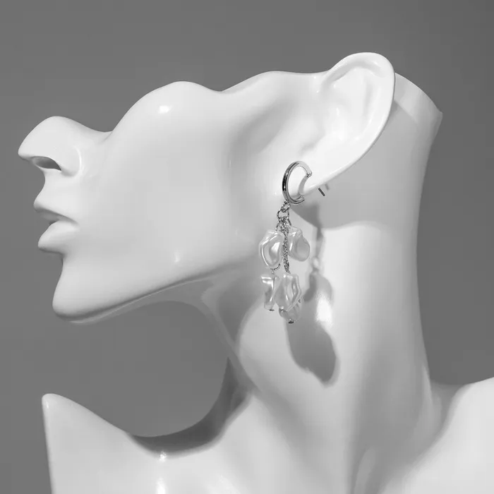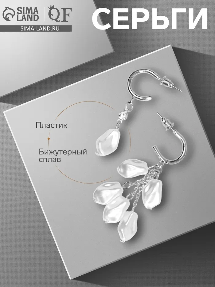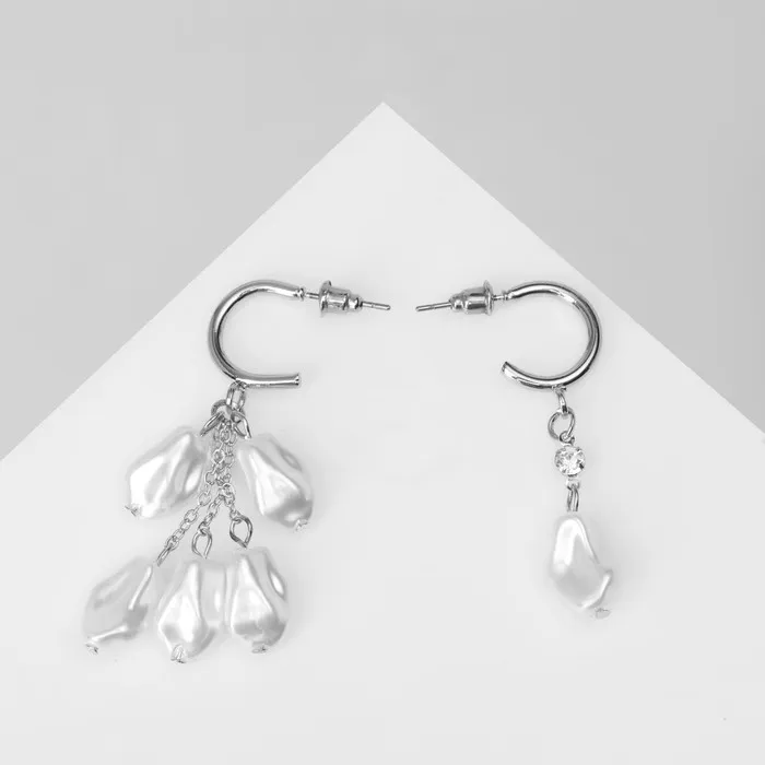 Серьги с жемчугом «Артемида» разные капли, цвет белый в серебре — Характеристики