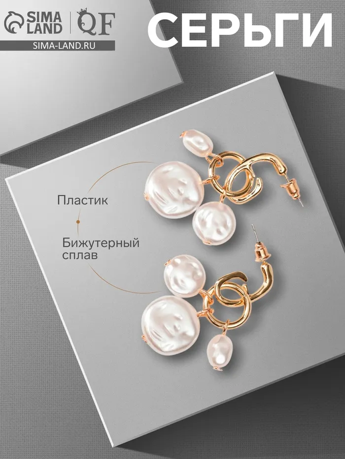 Серьги с жемчугом «Артемида» трио, цвет белый в золоте — Характеристики