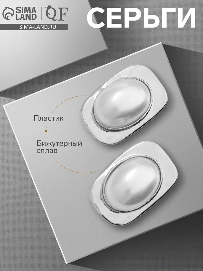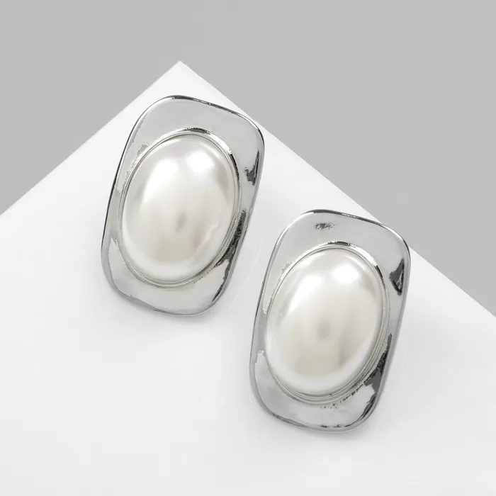 Серьги с жемчугом «Атмосфера» прямоугольник, цвет белый в серебре — Характеристики