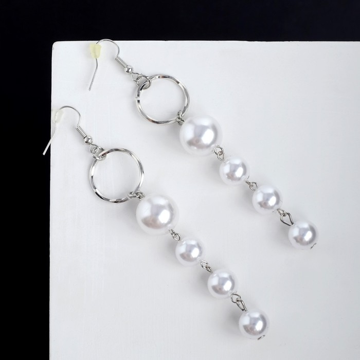 Серьги с жемчугом «Аврора» дорожка на кольце, цвет белый в серебре — Характеристики