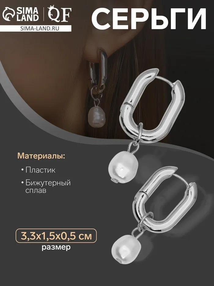 Серьги с жемчугом «Бусина» чувство нежности мини, цвет серебро — Характеристики