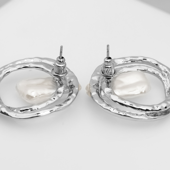 Серьги с жемчугом «Бусина» двойной круг, цвет серебро — Характеристики
