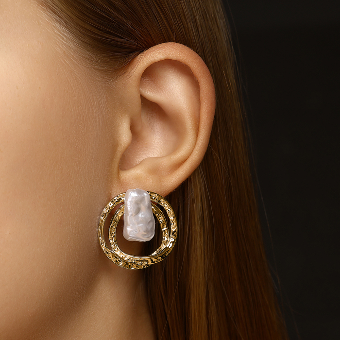 Серьги с жемчугом «Бусина» двойной круг, цвет золото — Характеристики