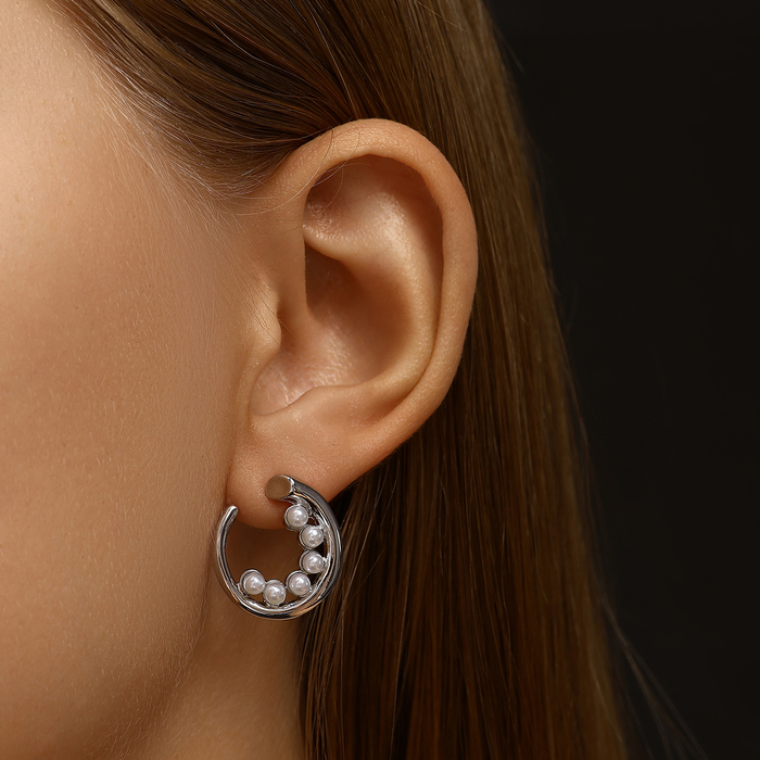 Серьги с жемчугом «Бусина» горошина, цвет серебро — Характеристики