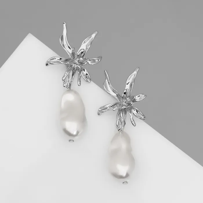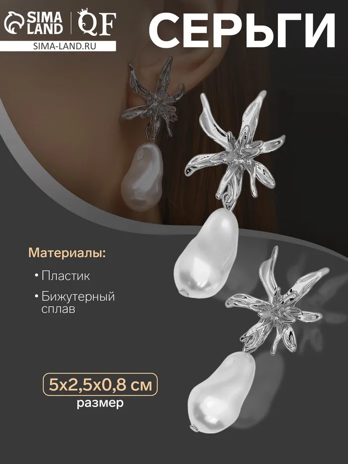Серьги с жемчугом «Бусина» груша с цветком, цвет серебро — Характеристики