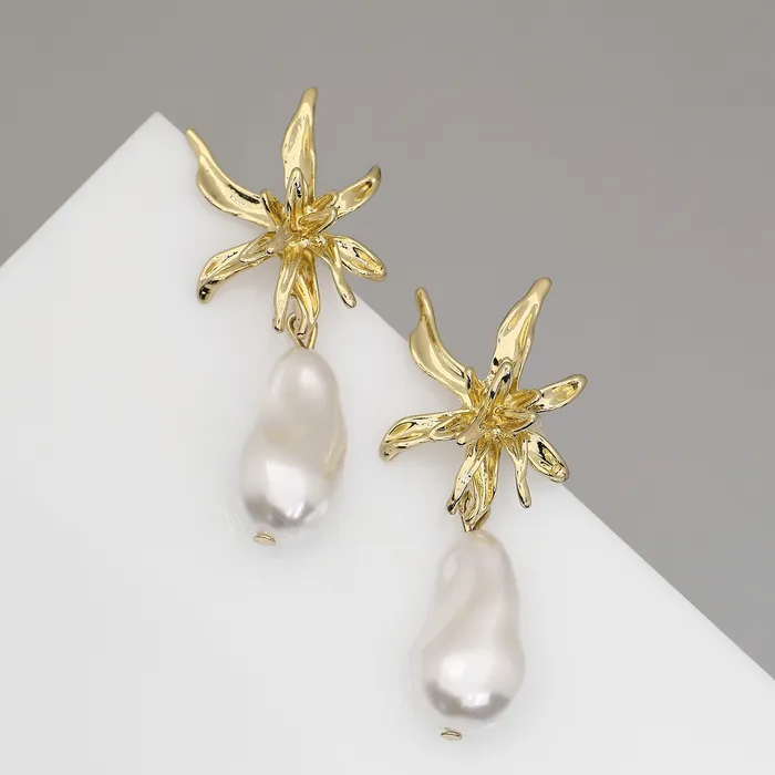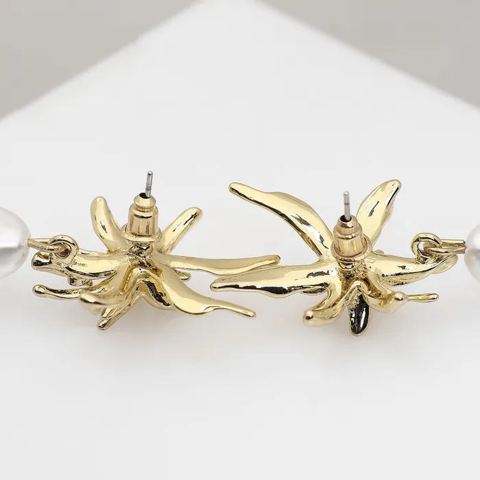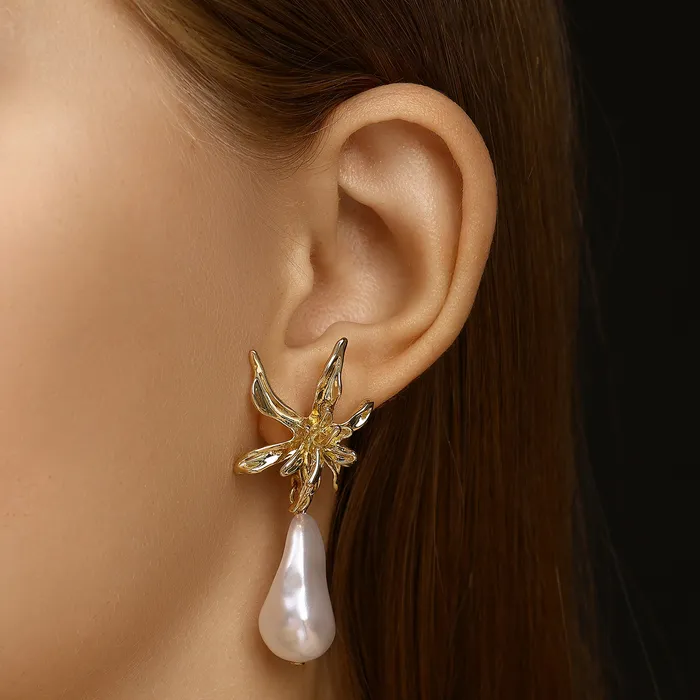 Погрузитесь в мир утонченной красоты с серьгами, которые идеально сочетают в себе элегантность и оригинальность. Эти золотые украшения с искусственным жемчугом и изящным цветком длиной 5 см станут великолепным дополнением к вашему образу, подчеркивая вашу индивидуальность и стиль.