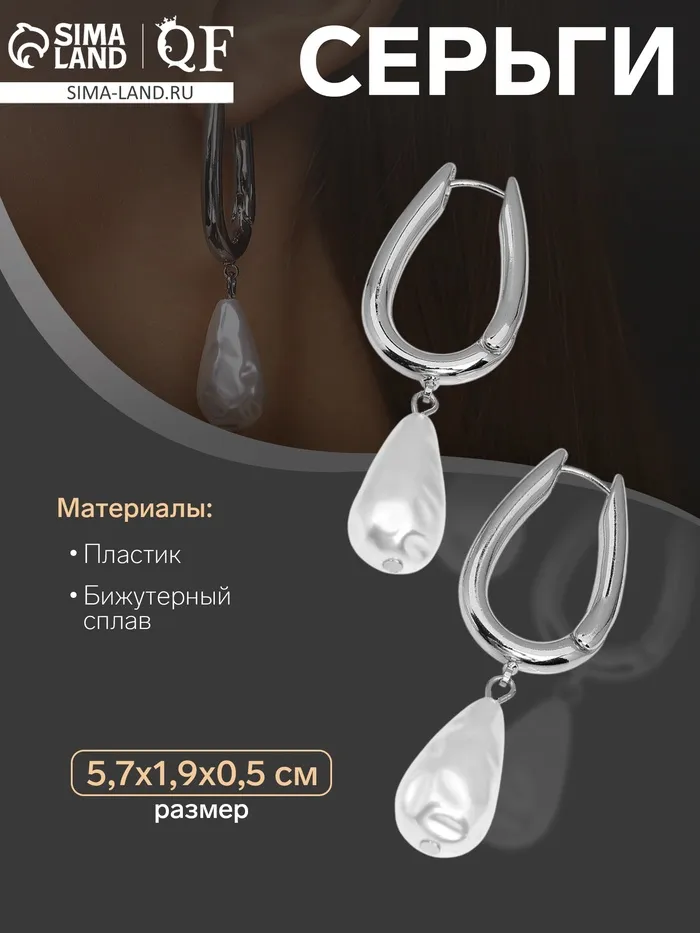 Серьги с жемчугом «Бусина» груша, цвет серебро — Характеристики