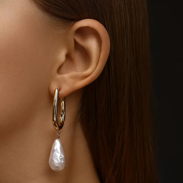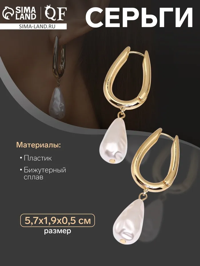 Серьги с жемчугом «Бусина» груша, цвет золото — Характеристики