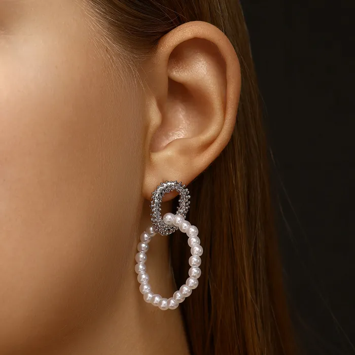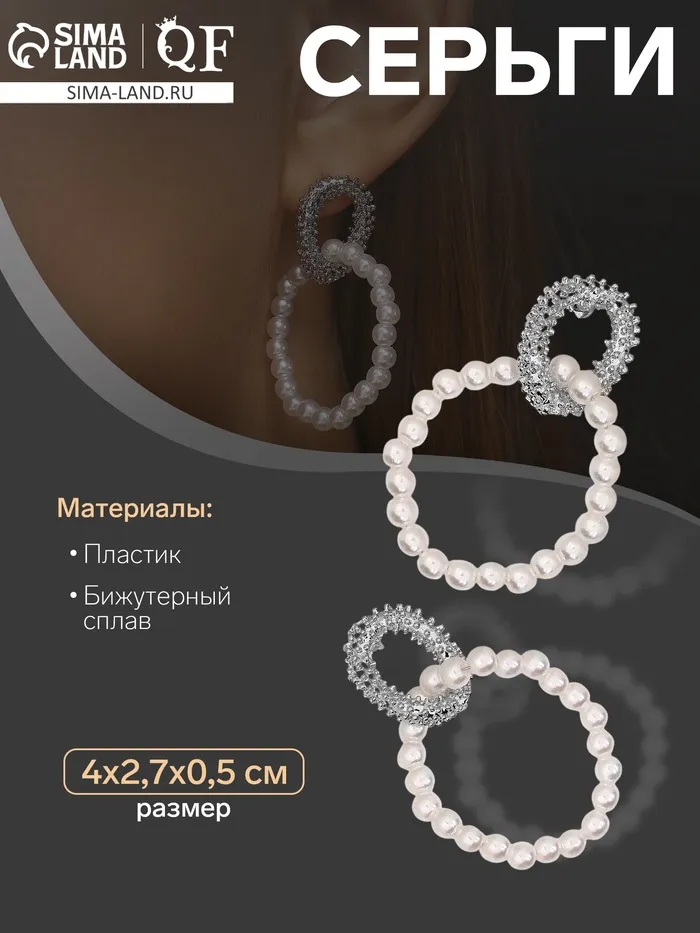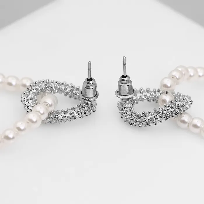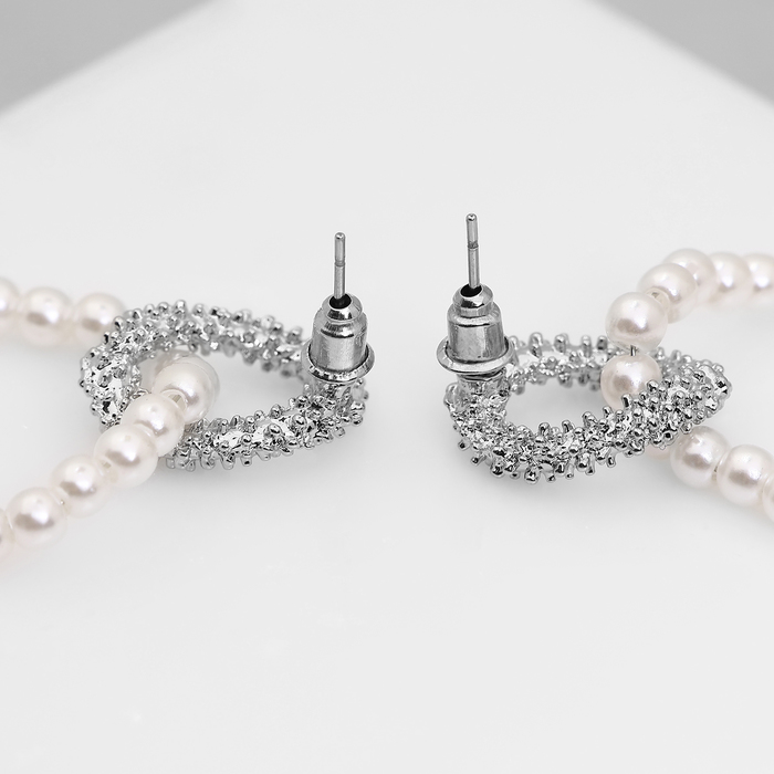 Серьги с жемчугом «Бусина» переплетение чувств, цвет серебро — Характеристики