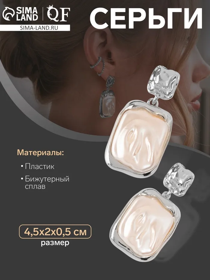 Серьги с жемчугом «Бусина» пленительность, цвет серебро — Характеристики