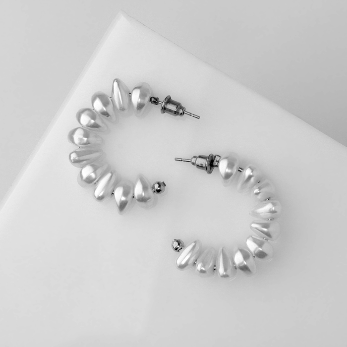 Серьги с жемчугом «Бусина» полумесяц, цвет серебро — Характеристики
