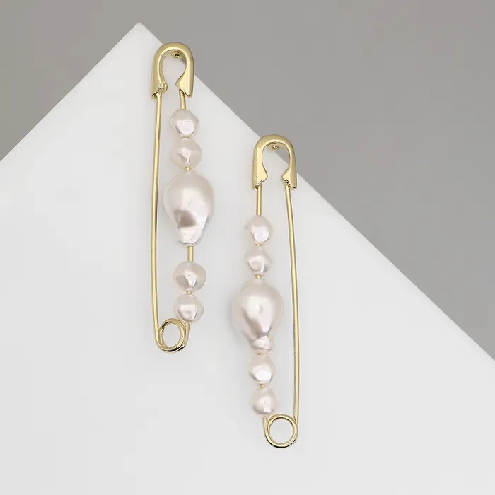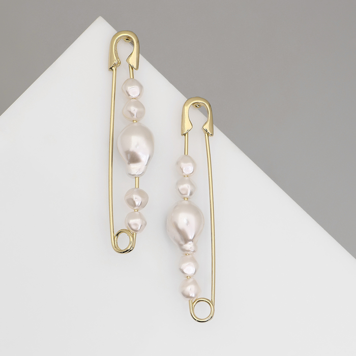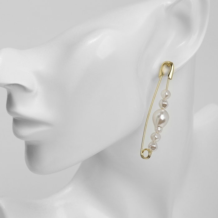 Серьги с жемчугом «Бусина» союз, булавка, цвет золото — Характеристики