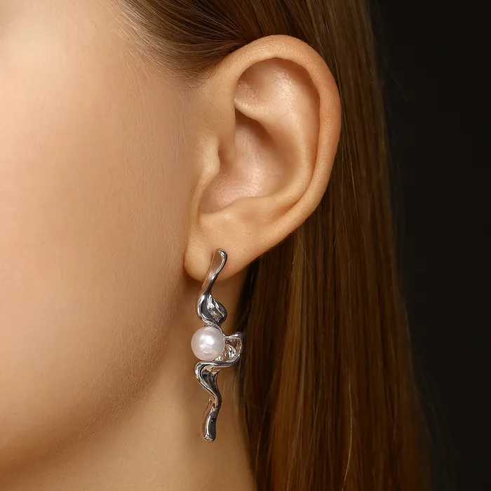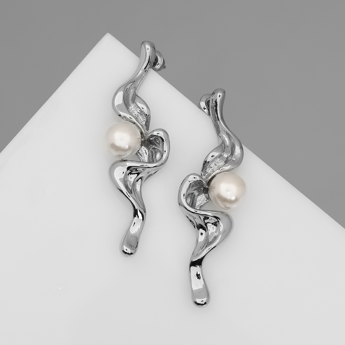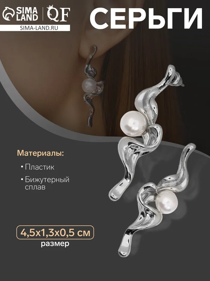 Серьги с жемчугом «Бусина» сосуд, цвет серебро — Характеристики