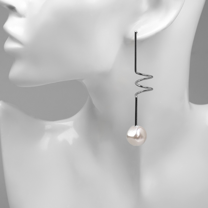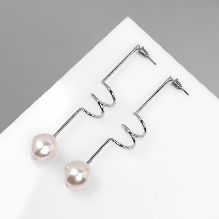 Серьги с жемчугом «Бусина» спираль мини, цвет серебро — Характеристики
