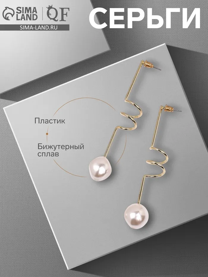 Серьги с жемчугом «Бусина» спираль мини, цвет золото — Характеристики