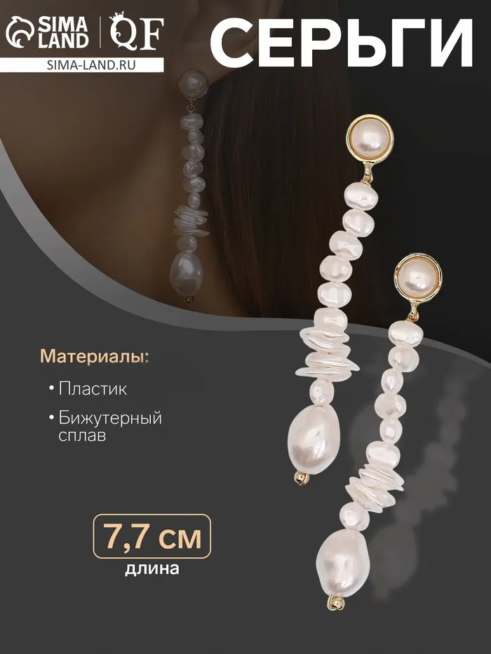 Серьги с жемчугом «Бусина» вершина, цвет золото — Характеристики