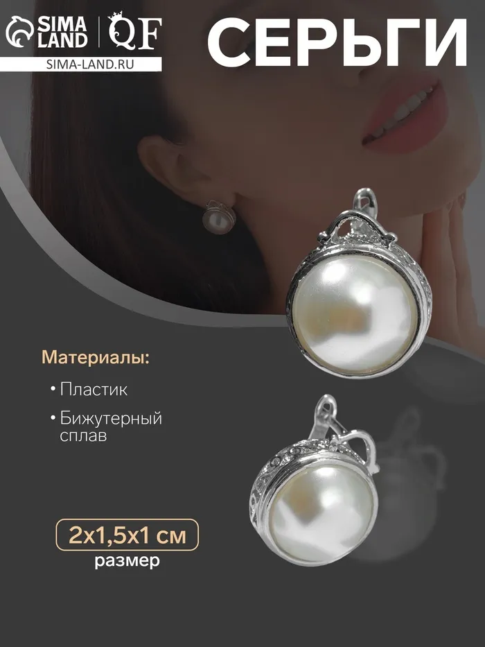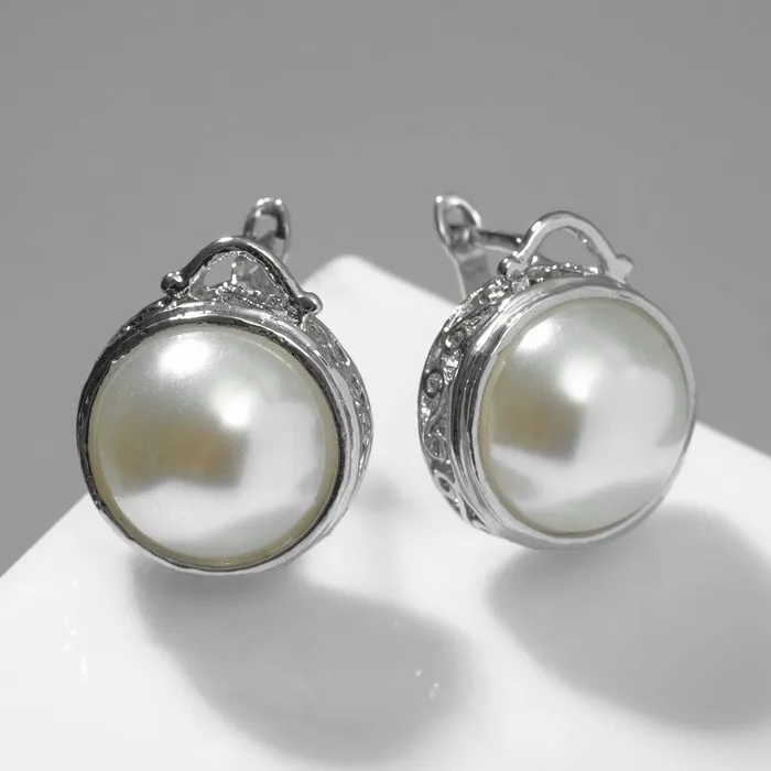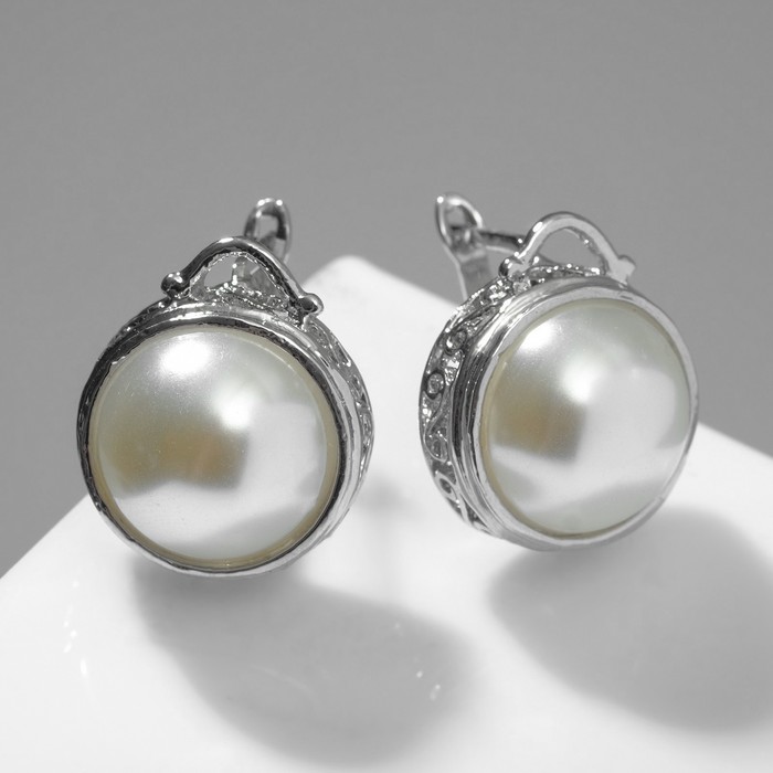 Серьги с жемчугом «Эдель» круг классика, цвет белый в серебре — Характеристики