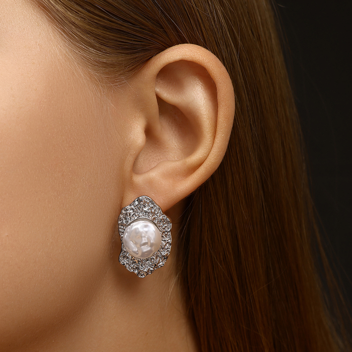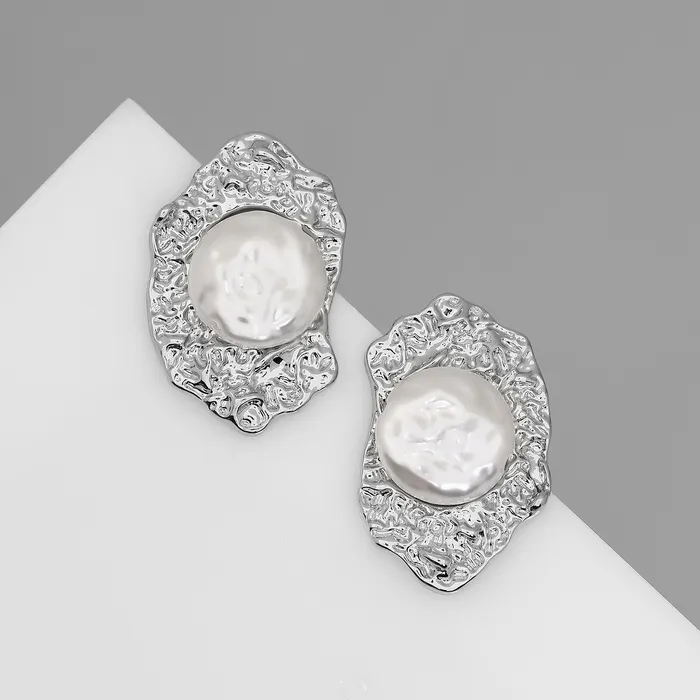 Серьги с жемчугом «Эксклюзив» мятые, цвет серебро — Характеристики