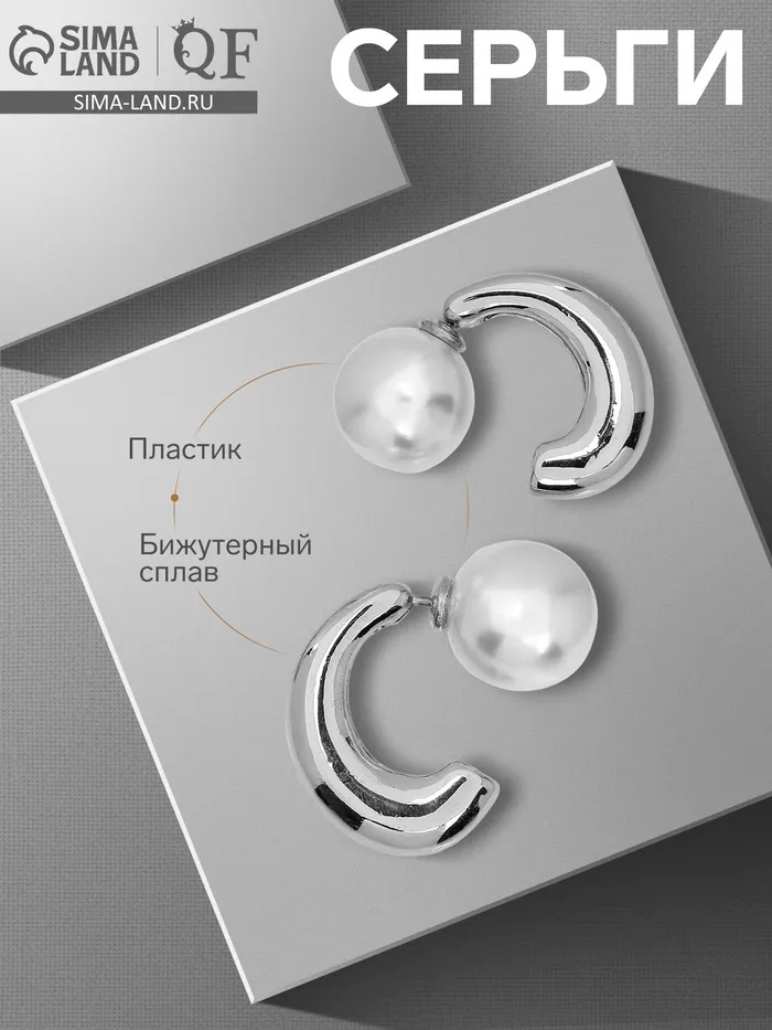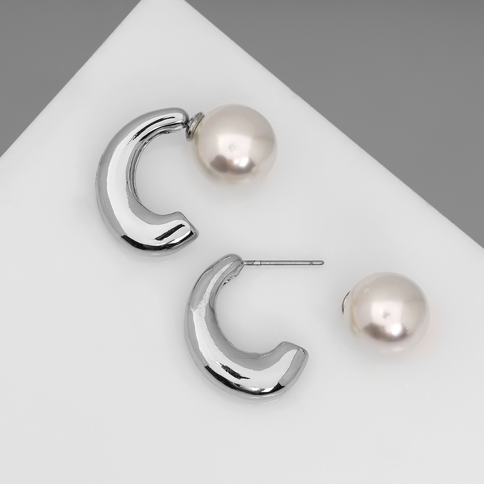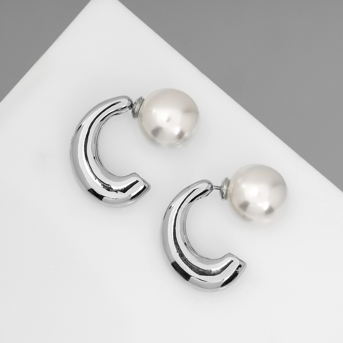 Серьги с жемчугом «Эксклюзив» полукольца, цвет серебро — Характеристики