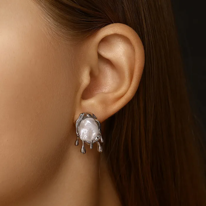 Серьги с жемчугом «Эксклюзив» таяние, цвет серебро — Характеристики