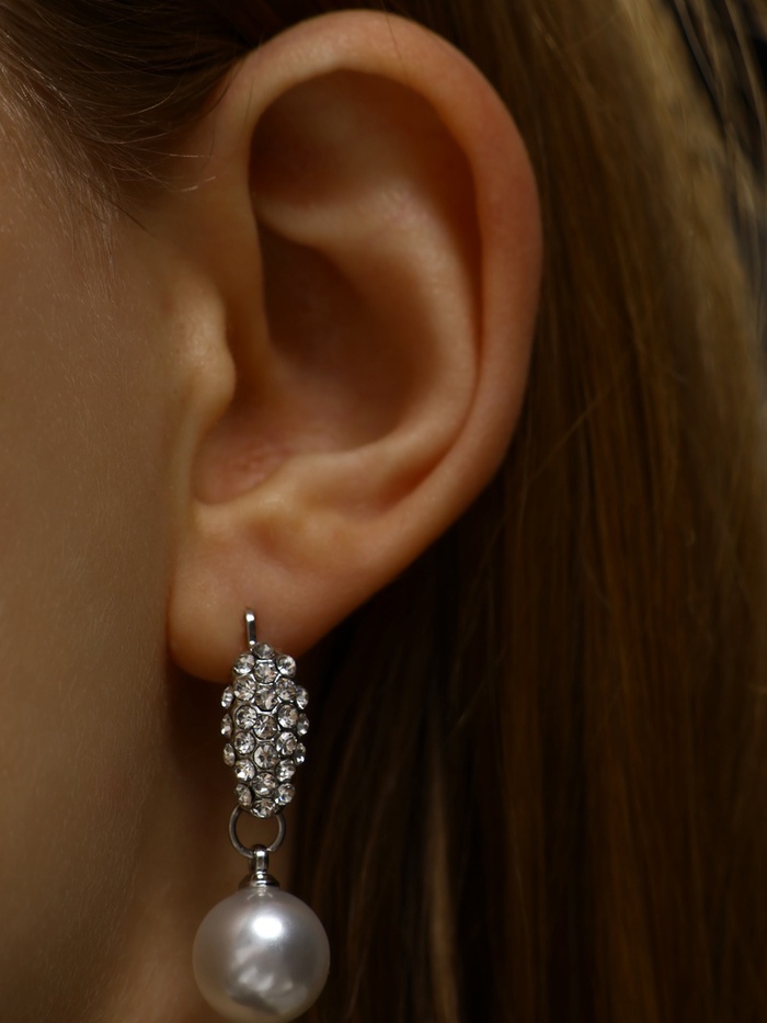 Серьги с жемчугом «Грейс» дорожка, цвет белый в серебре — Характеристики