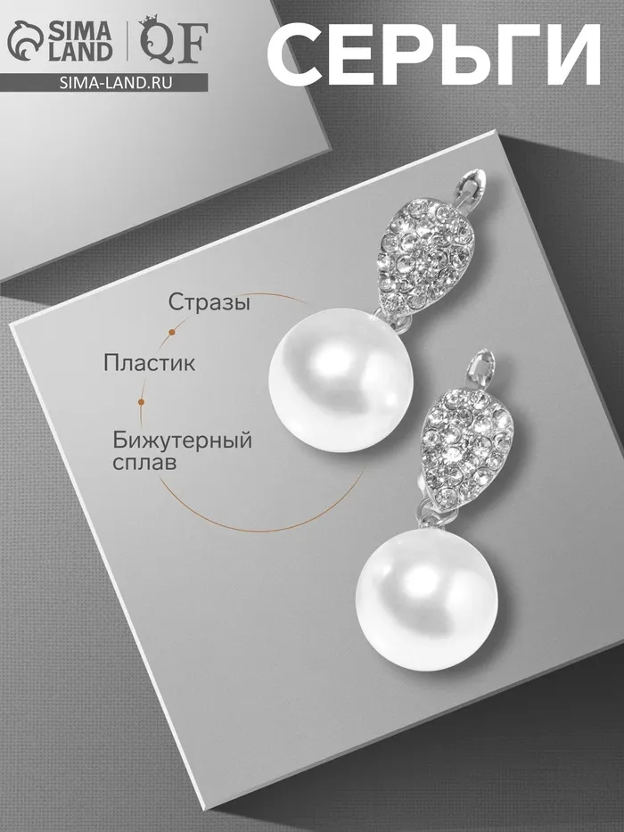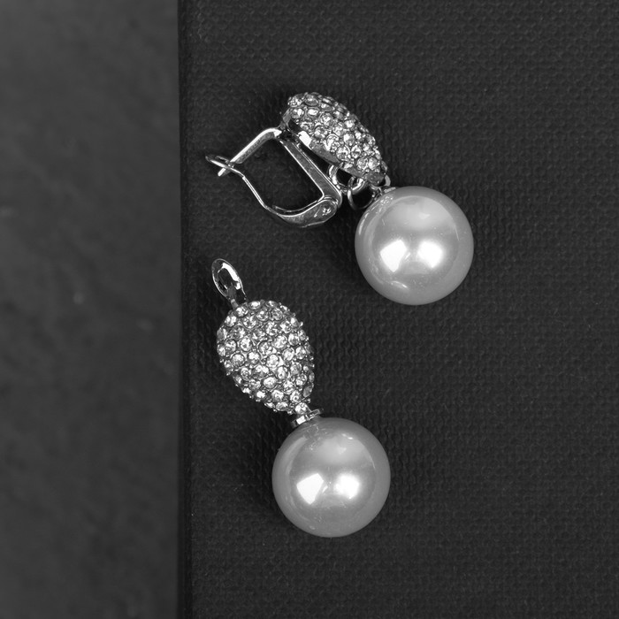 Серьги с жемчугом «Грейс» капля и сфера, цвет белый в серебре — Характеристики