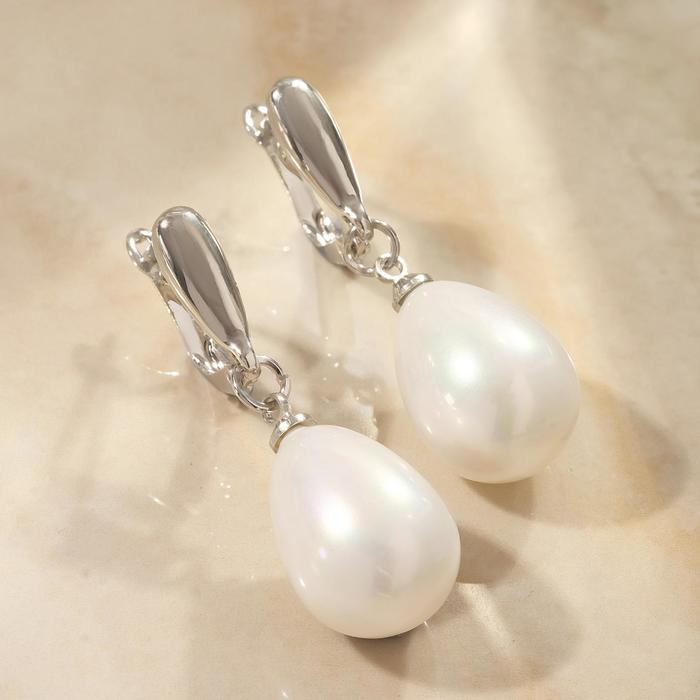 Серьги с жемчугом «Грейс» пухлая капля, цвет белый в серебре — Характеристики