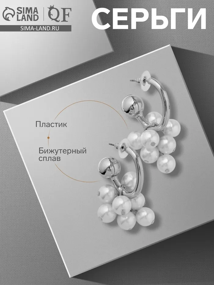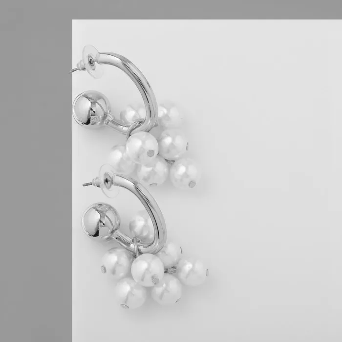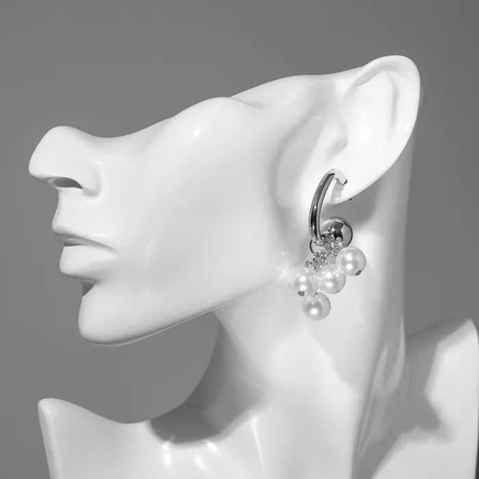 Серьги с жемчугом «Грозди» на кольце, цвет белый в серебре — Характеристики