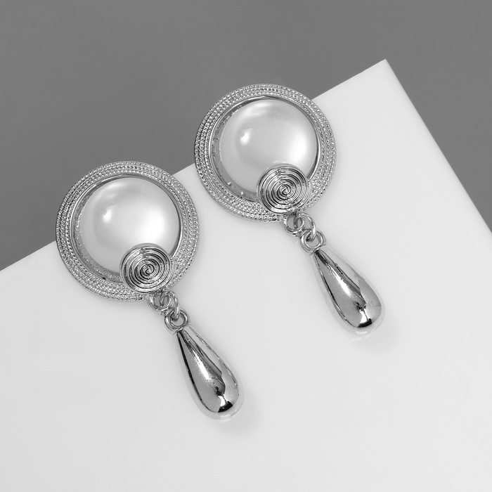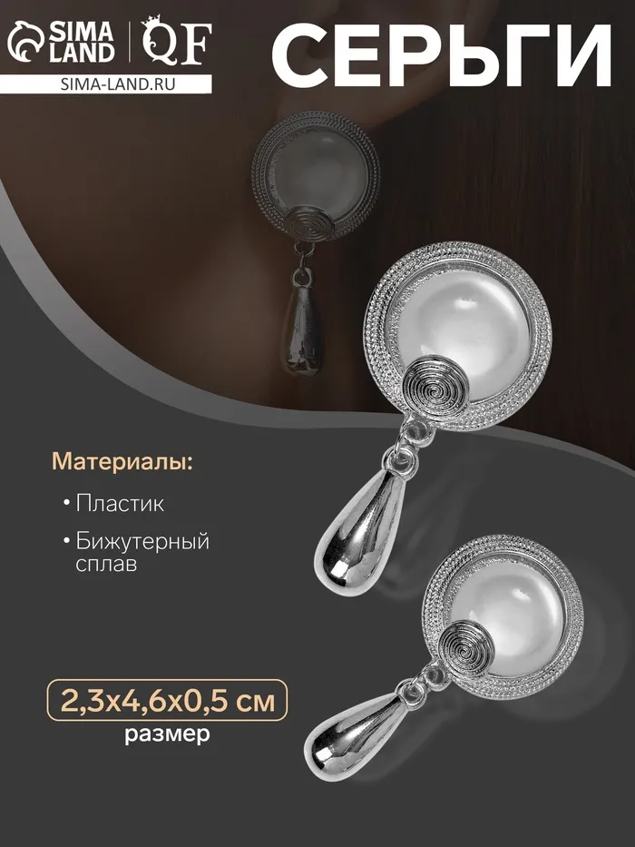 Серьги с жемчугом «Капли» буря, цвет серебро — Характеристики