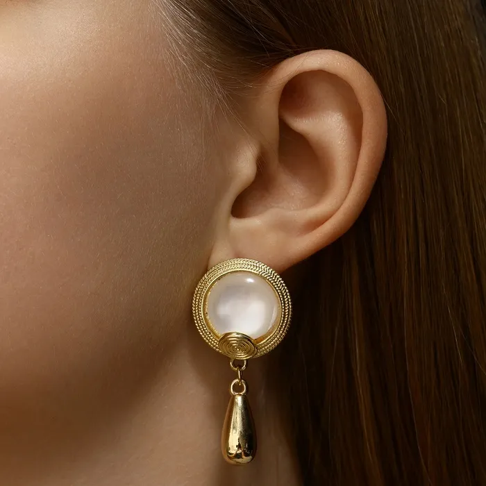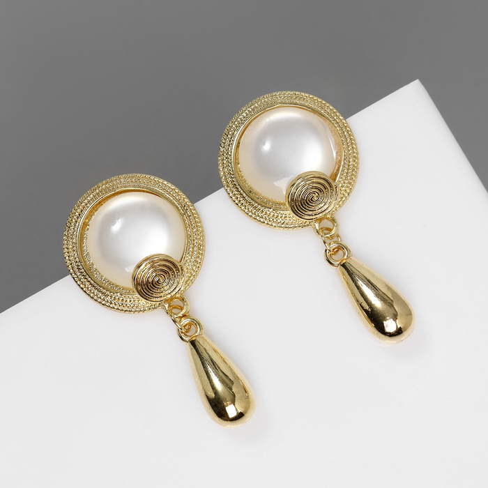 Серьги с жемчугом «Капли» буря, цвет золото — Характеристики