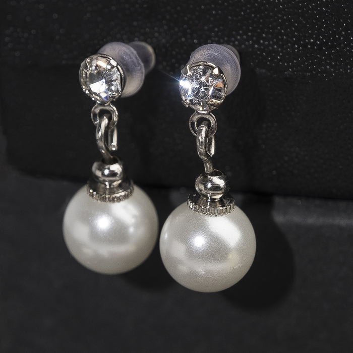 Серьги с жемчугом «Невеста» бусины d=1, со стразами, белые — Характеристики
