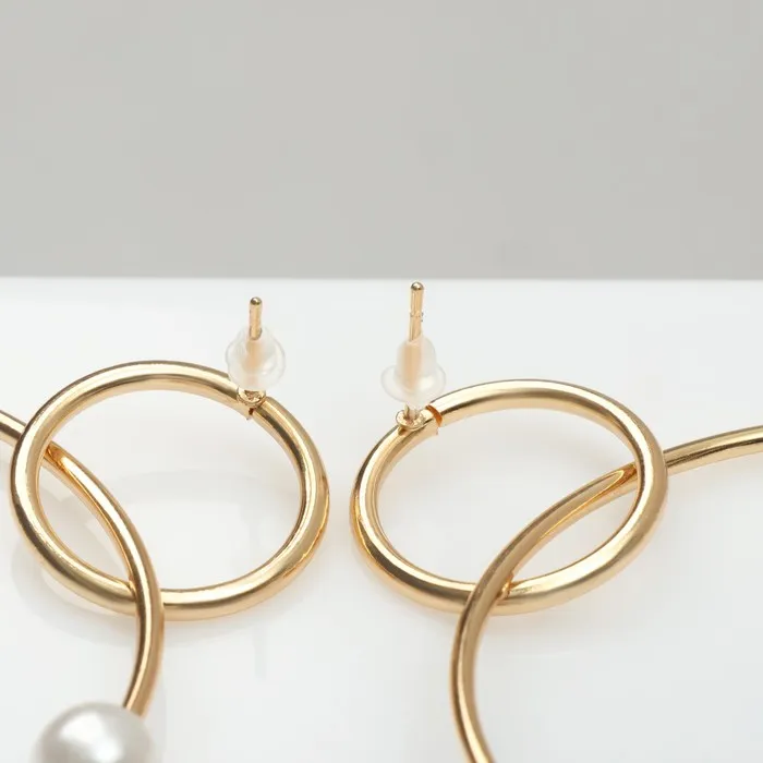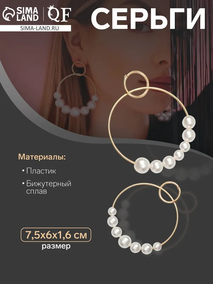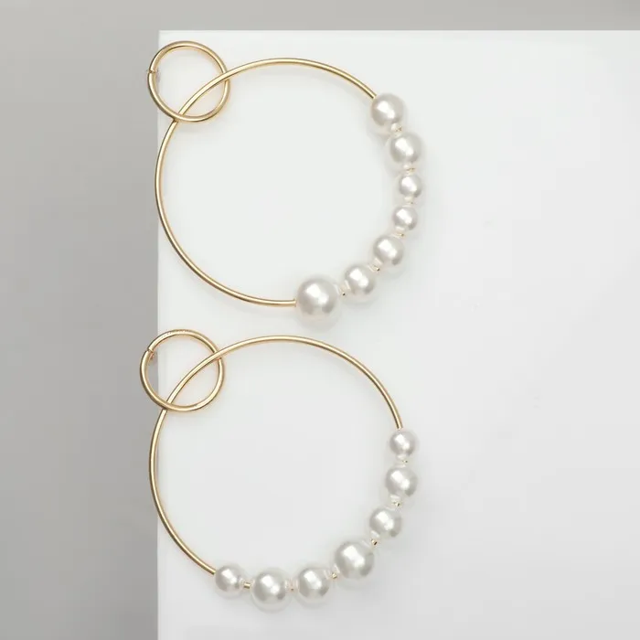 Серьги с жемчугом «Нежность» два кольца с бусинами, цвет белый в золоте — Характеристики