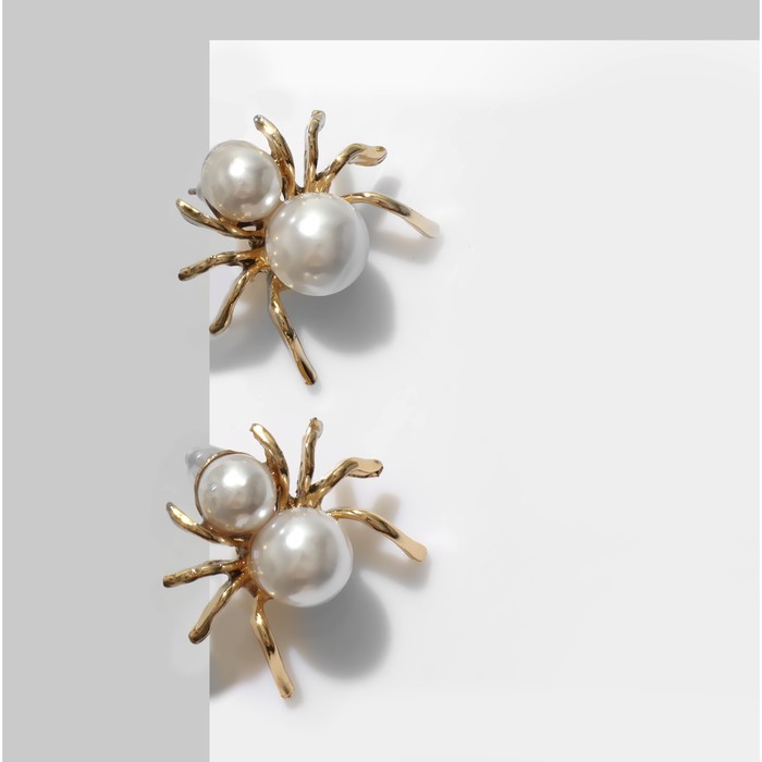 Серьги с жемчугом «Паук» миниатюрный, цвет белый в золоте — Характеристики