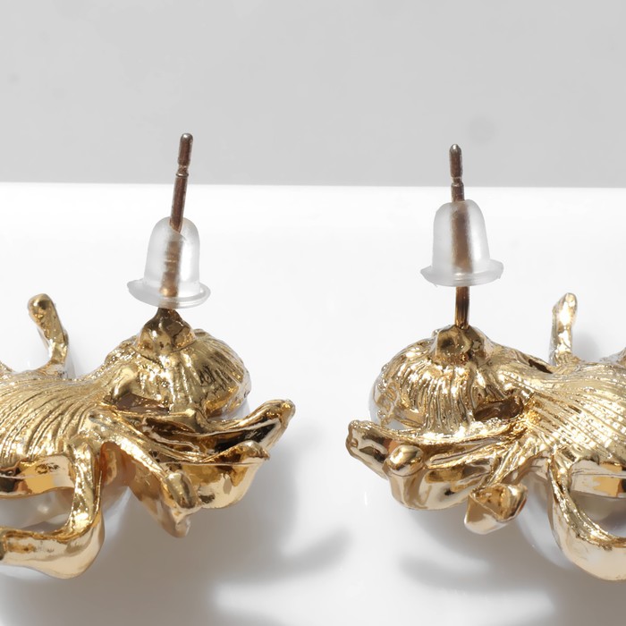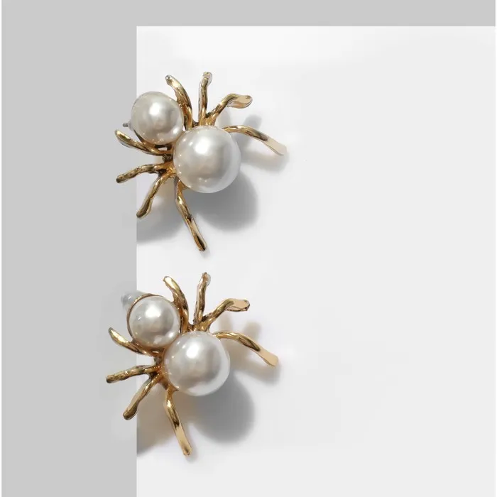 Серьги с жемчугом «Паук» миниатюрный, цвет белый в золоте - яркий элемент на Хэллоуин, который порадует любого.