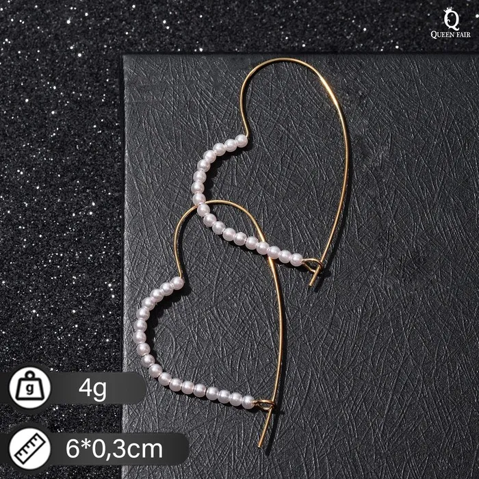 Серьги с жемчугом «Сердечки» незакрытые, цвет белый в золоте — Характеристики