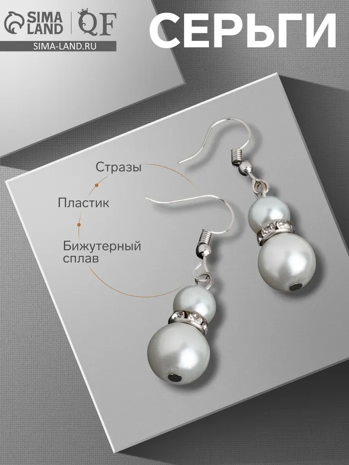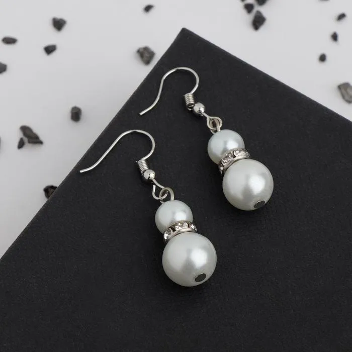 Серьги с жемчугом «Шарик двойной», цвет белый в серебре — Характеристики