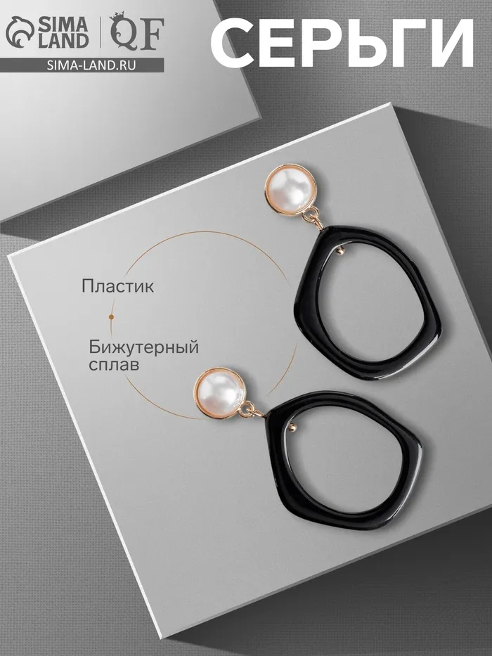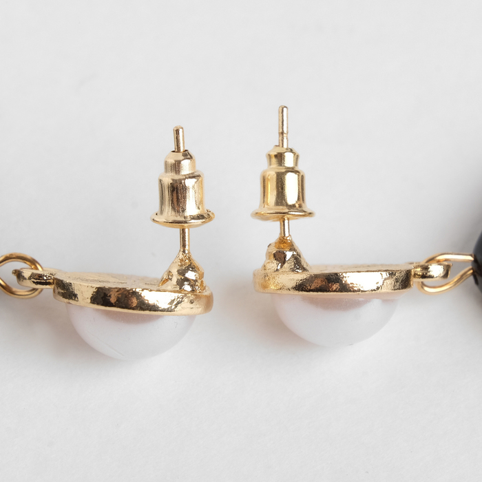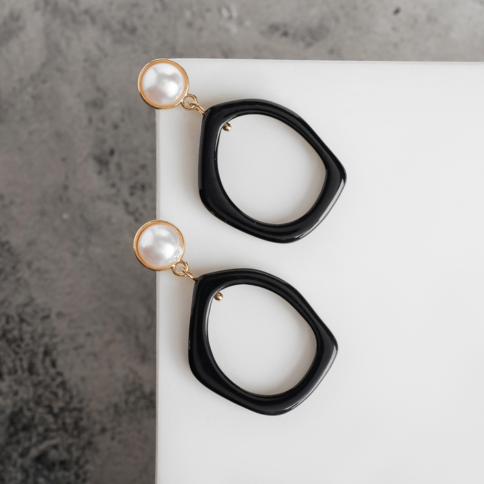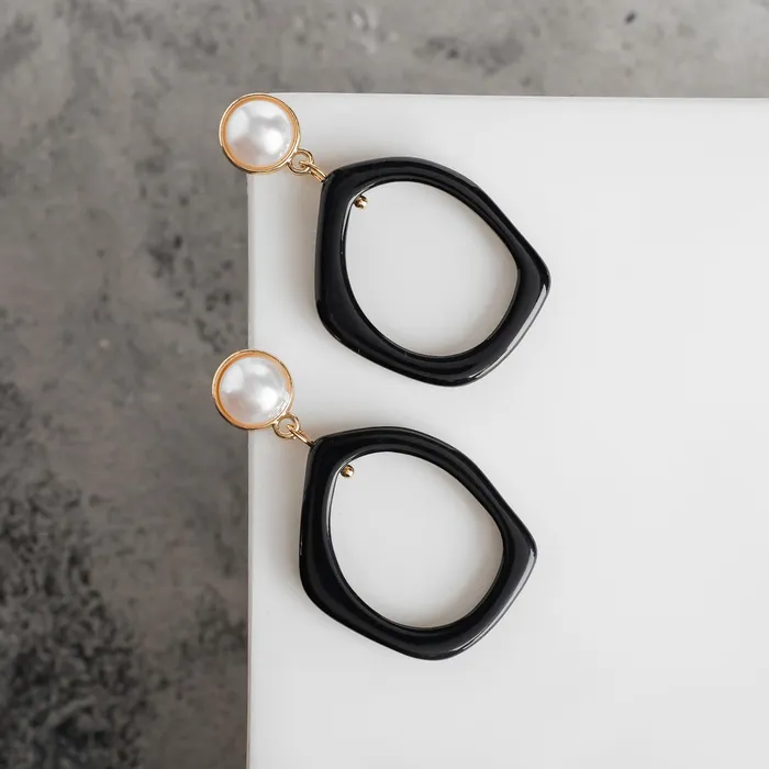 Серьги с жемчугом «Сиа» мятые кольца, цвет чёрно-белый в золоте — Характеристики