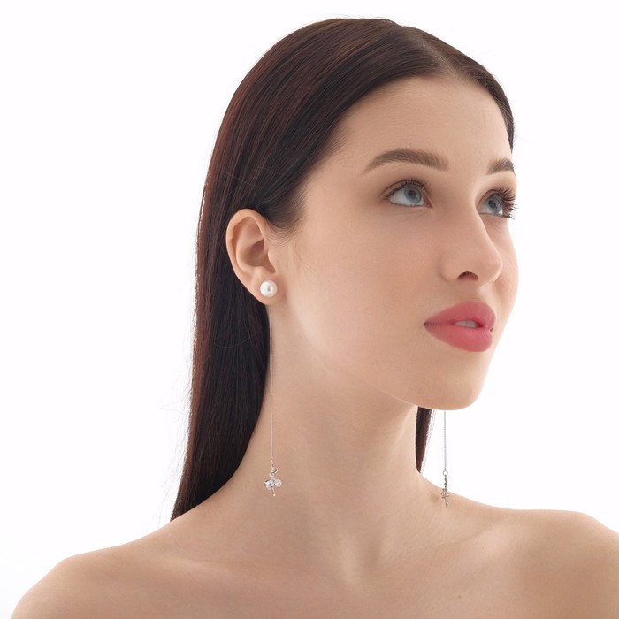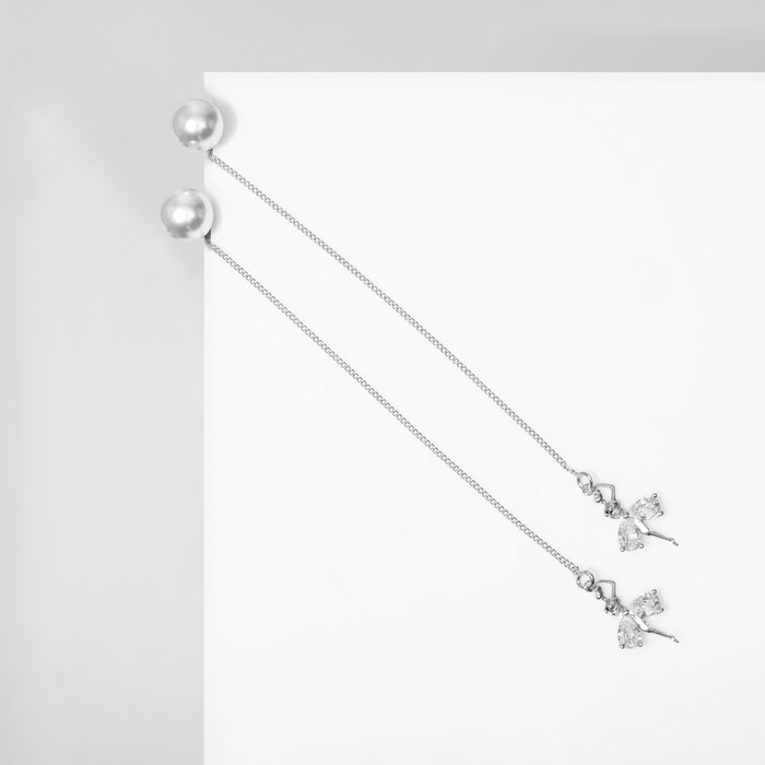 Серьги с жемчугом «Цепочки» балерина и бусина, цвет белый в серебре, шар №10 — Характеристики