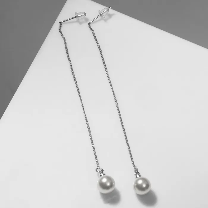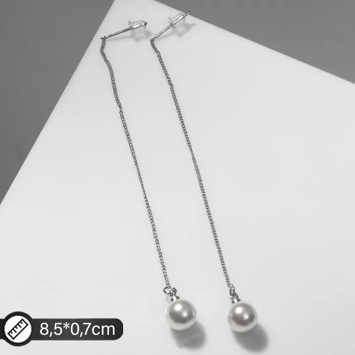 Серьги с жемчугом «Цепочки» горошина, цвет серебро — Характеристики
