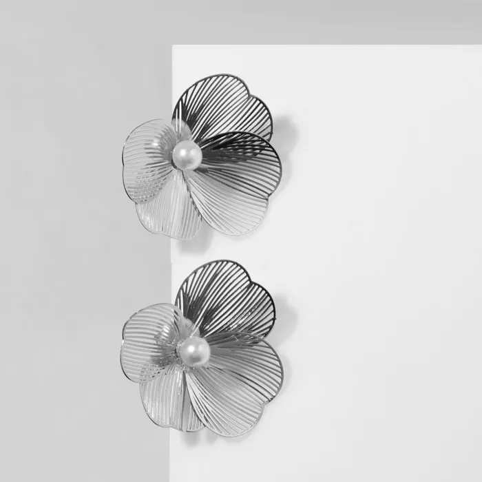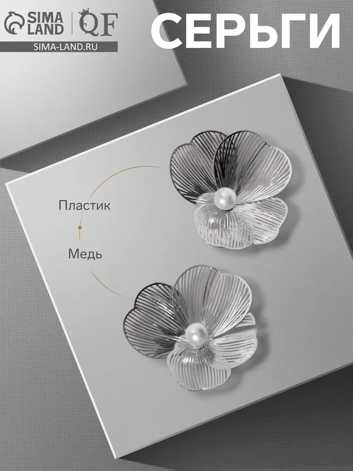 Серьги с жемчугом «Цветы» лёгкие, цвет белый в серебре — Характеристики