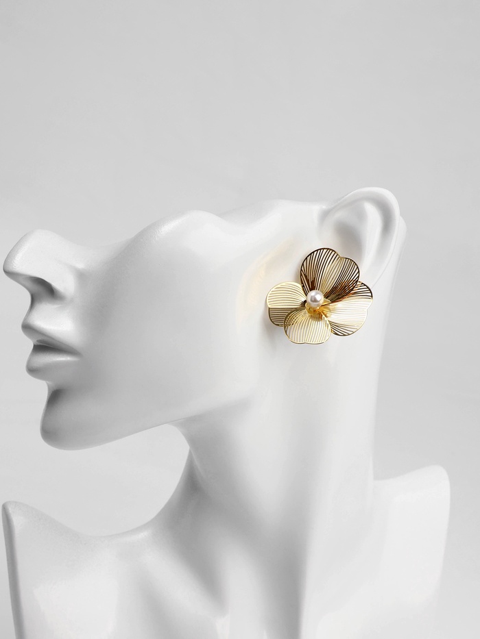 Серьги с жемчугом «Цветы» лёгкие, цвет белый в золоте — Характеристики