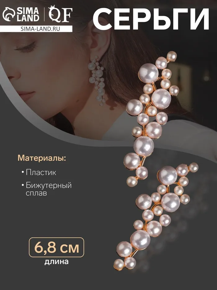 Серьги с жемчугом «Жасмин» ветка с жемчугом, цвет белый в золоте — Характеристики