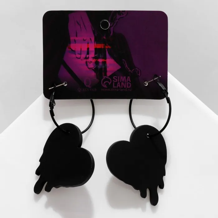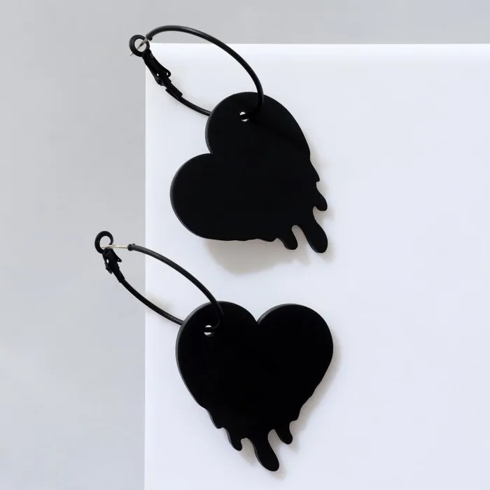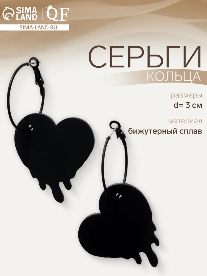 Серьги «Сердца», чёрные в чёрном металле, d=3 см — Характеристики